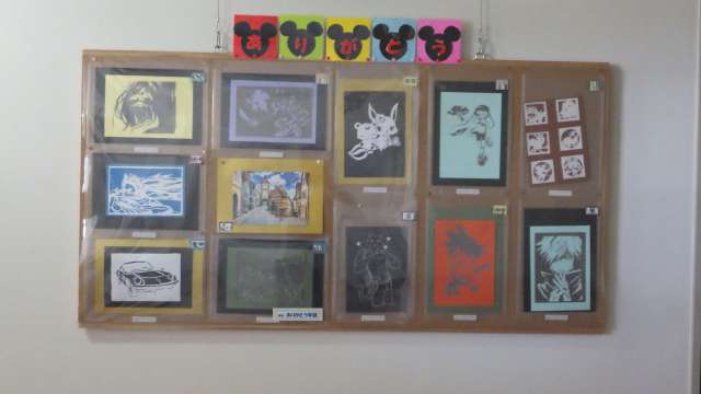 ありがとう学級の生徒の作った作品が玄関で皆様をお迎えします。