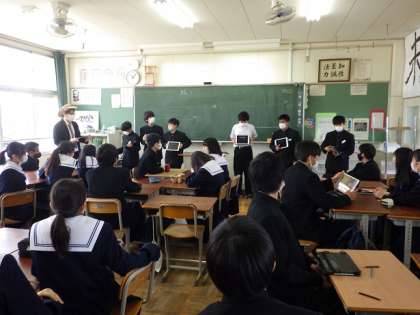 4月14日(金)学級活動 公開日 2023/04/15 更新日 2023/04/17 お知らせ 互いの考えを聞き合い、自分の考えを見直していくような場面を作ることが、授業を充実したものにします。「協働的な学び」と言われるものです。そこでは、学習用タブレットの活用も効果的です。 協働的に学ぶには、自分を意見を受け入れてもらえる安心感や、異なる意見や考えを認め合う雰囲気が、学級に必要です。学級活動で生徒たちのつながりを作ることは、今後の授業にも生きてくると考えます。