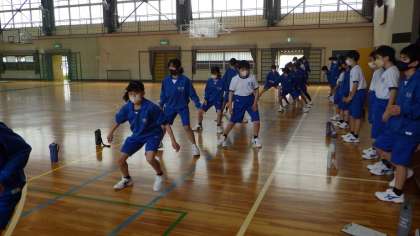 敏捷性(びんしょうせい)を測定します。重心を低く保ちながら、素早く動きます。