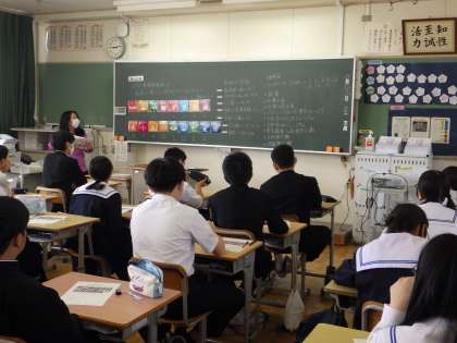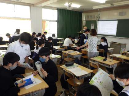 下は家庭科の授業です。SDGsについての学習ですが、6月に行う修学旅行の研修先につながっていく内容でした。