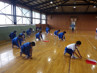 3年生の体育の授業です。学年演技の練習をしています。今年はフラッグに挑戦です。かっこよく決まる本番が楽しみです。