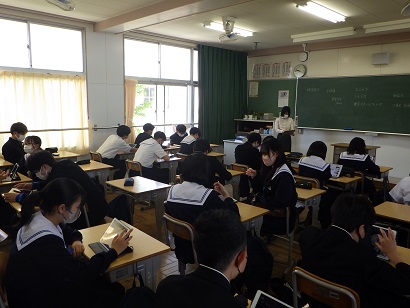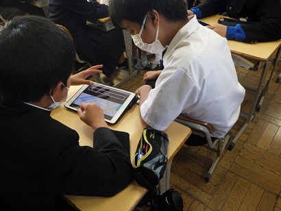3年生の学級です。修学旅行(6/13火〜6/15木)での訪問先について、学習用タブレットで調べています。修学旅行も徐々に準備が始まっています。思い出に残る旅行にしていきたいですね。