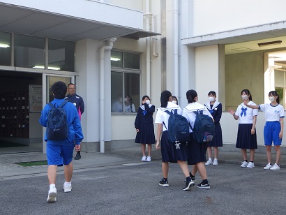 今日から5月です。生徒会が中心になって、あいさつ登校を行っています。1日のスタートをさわやかなあいさつで始めていきましょう。