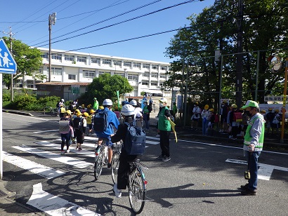 写真は、民生委員愛の一声運動の様子です。登校してくる生徒たちを温かく迎えていただきました。元気なあいさつと共に、逢妻中学校の1日が始まりました。