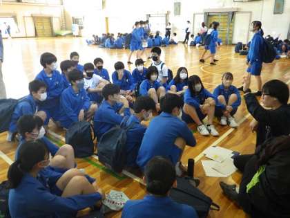 体育祭ボランティアスタッフの打合せの様子です。環境美化や審判、テント設営など、逢妻中には体育祭を支える様々なボランティア生徒がいます。当日に向けて、それれぞれ活動内容の確認などを行いました。