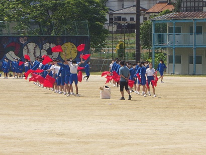 5月12日(金)体育祭まであと1週間 公開日 2023/05/12 更新日 2023/05/12 お知らせ 3年生学年演技の練習の様子です。動きも揃ってきて、風を切るようなフラッグの音が、とてもかっこいいです。さすが3年生です。当日の発表が楽しみです。