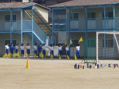 熱中症予防や体調管理を心がけ、下のように直射日光を避けるなど、日陰で活動する時間を組み入れながら練習を進めています。