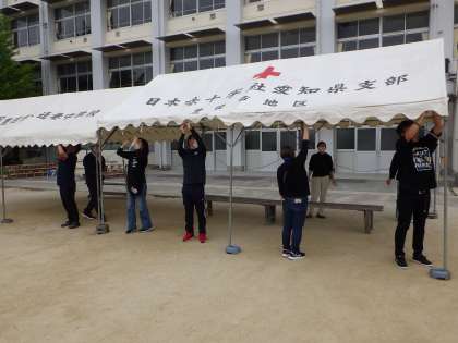 5月13日(土)ミストシャワーを設置しました1 公開日 2023/05/13 更新日 2023/05/13 PTA活動 夏が近づいてきました。熱中症予防を始めとする子どもたちの暑さ対策のため、育友会の活動として、今年もミストシャワーを設置しました。 水の出る方向を確かめながら、ミストシャワーのついたホースをテントを支えているパイプに括り付けます。 設置後、試運転をしましたが、シャワーのつまりがあるのか、うまく出てこない箇所がありました。