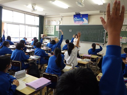 1年生の国語の授業です。漢字の部首について学習しています。積極的に授業に参加していました。