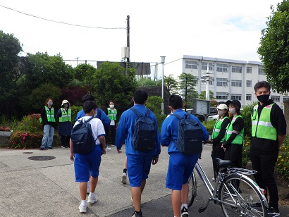 生徒たちの登校時間に合わせて、あいさつ運動を行いました。写真は正門付近の様子です。生徒たちには、生き生きとした学校生活を毎日送ってほしいと願っています。