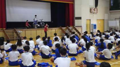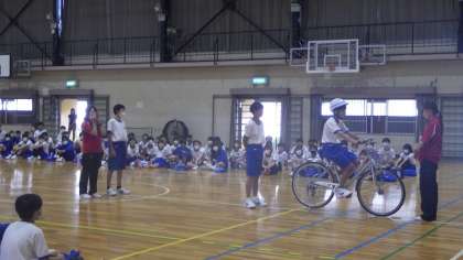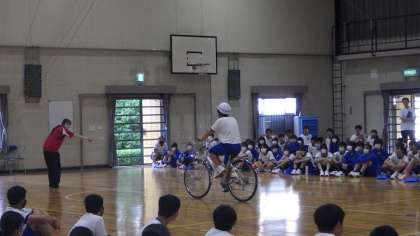 豊田市交通安全学習センターの方をお招きし、安全な自転車の乗り方を学びました。