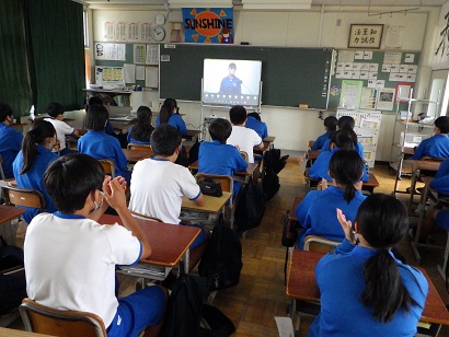 本来は体育館に集合して行う予定でしたが、感染症防止などの健康管理を考えて、リモート開催としました。