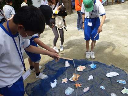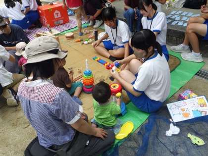 参加した中学生は、優しいお兄さん・お姉さんとして、朝市に家族と訪れた幼児や小学生に接してくれました。
