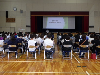 公立学校、私立・専修学校等の先生方に参加をいただき、保護者の方には進路に関する基本的な事柄をお伝えするため、また、3年生は各学校の説明を聞き、自分の進路に向けてより深く考えてもらうために開催しました。