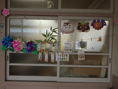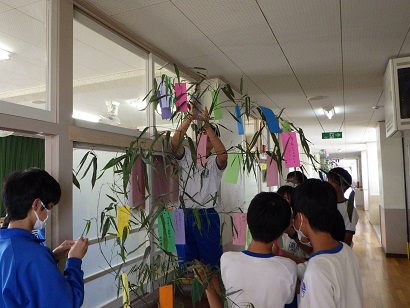 もうすぐ七夕です。飾りつけをしている学級や学年がありました。願い事が叶うとよいですね。