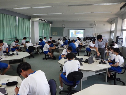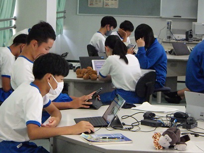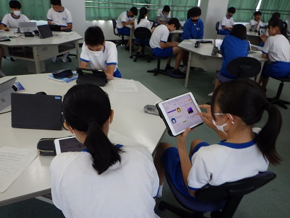 3年生の技術科です。学習用タブレットを活用して、プログラミングに挑戦です。プログラミング的な思考や情報モラル等について学んでいきます。