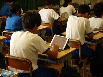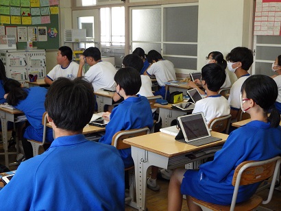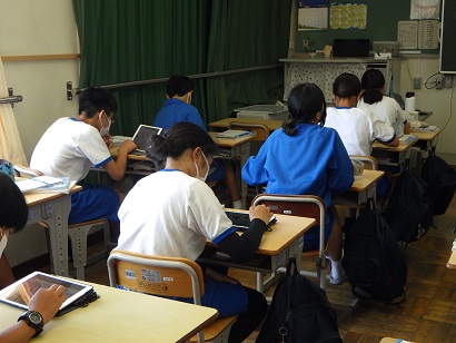 2年生の社会科です。情報機器を活用したクイズ形式の学習を通して、これまでの復習を行っています。社会科では様々な用語が出てきますが、しっかりと整理しておきましょう。
