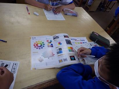1年生の美術科です。色の関係について学習しています。色の性質を知っておくことで、今後の制作に役立ちますね。