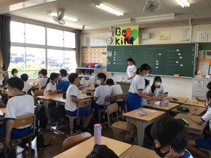 1年生です。この学級では、夏休み明けのこれからの生活における目標を確認していました。夏休みからの気持ちの切り替えをして、充実した日々を心がけていきましょう。