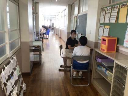学校が始まりました。よりよい学校生活にするため、担任と一人一人が話をする時間を設けています。