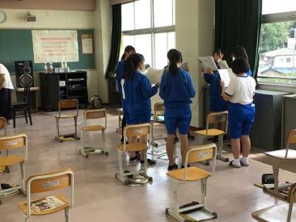3年生の音楽です。合唱曲をパートごとに練習しています。それぞれのパートで音をとるのはなかなか大変そうですが、みんながんばっていました。