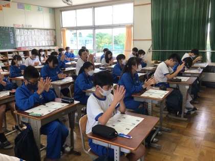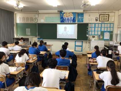 感染症対策もあり、立会演説はオンライン形式で行い、各教室での投票となります。どの立候補者も、自分の考えや取り組みたいことを堂々と発表しました。演説を聞いている教室では、立候補者一人一人の演説に拍手を贈る姿が見られました。