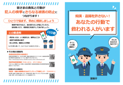 9月22日(金)警察庁作成「痴漢・盗撮被害の申告・相談をしやすい環境を整備するための啓発パンフレット」を掲載しました