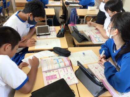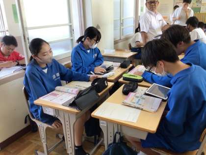 タブレットを活用し、各候補者の特徴について互いの考えを確認しました。その後、誰を選ぶかグループや全体で意見交流しました。グループでは、様々な視点から考え、生き生きと話し、聞き合う逢中生の姿を見ることができました。そこには、確かな「協働的な学び」の姿がありました。