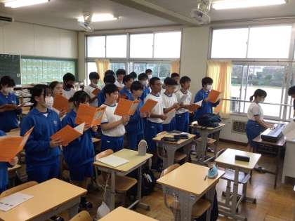 写真は、昨日の3年生です。3年生はさすが、歌声が安定しつつあります。校内のよきお手本としても期待しています。