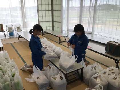 昼食のお弁当などを仕分けしているところです。裏方の仕事も、しっかりと支えてくれています。