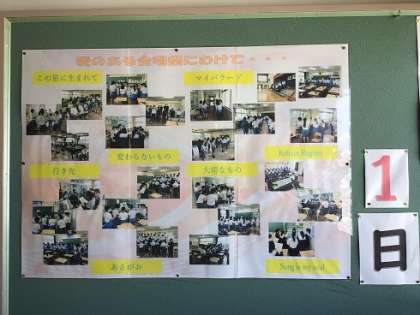 10月19日(木)いよいよ合唱祭1 公開日 2023/10/19 更新日 2023/10/19 学校行事 1年生の学年掲示板です。いよいよ明日となった合唱祭。各学級の合唱曲の紹介と共に、これまでの練習風景の写真が掲載されています。