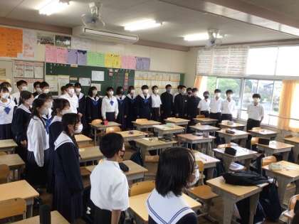 10月19日(木)いよいよ合唱祭3 公開日 2023/10/19 更新日 2023/10/19 学校行事 上の2枚は2年生、下の1枚は1年生の様子です。 最後の仕上げをしたり、円陣を組んで気持ちを高めたりしています。明日がますます楽しみです。