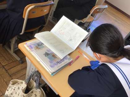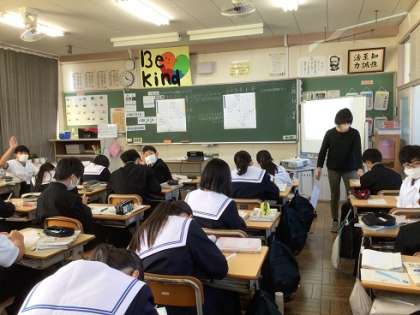 1年生の数学科です。反比例の学習を進めています。今日は、表をもとに方眼上の座標に点をうち、反比例のグラフを描いてみました。そのあと、反比例のグラフの特徴を考えました。正比例と比較しながら理解をしておくとよいですね。