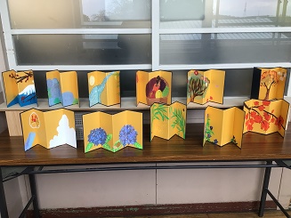 同じく、3年生の作品「屏風絵を描こう〜四季をテーマに〜」です。