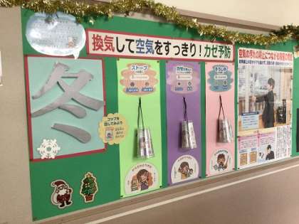 12月6日(水)保健室前の掲示 公開日 2023/12/06 更新日 2023/12/06 お知らせ 寒くなってきましたが、体調管理を進めるためにも定期的に換気を行うようにしています。インフルエンザ等はずいぶん減少してきましたが、引き続き予防を心がけていきます。