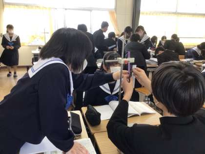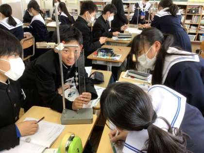 12月7日(木)授業の様子1 公開日 2023/12/07 更新日 2023/12/07 お知らせ 1年生の理科です。バネに重りをつるし、力の大きさとバネの伸びの関係について実験している様子です。どんな関係があるか、見つけることができたかな?