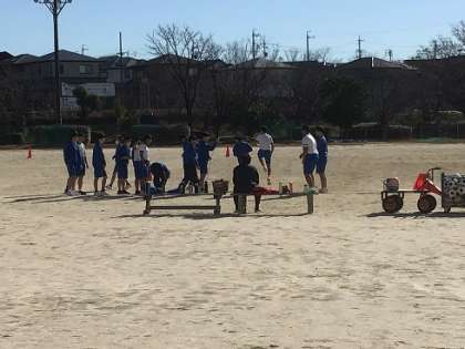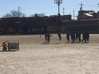 12月13日(水)授業の様子2 公開日 2023/12/13 更新日 2023/12/13 お知らせ 3年生の体育科です。授業ではサッカーを学習していますが、準備運動を兼ねて縄跳びを取り入れています。連続で跳ぶためのタイミングをとるのはなかなか難しいですが、声をかけ合いながらがんばっていました。