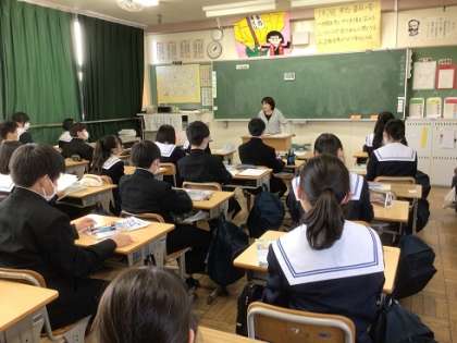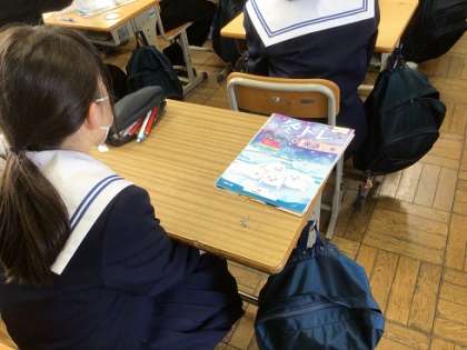 12月22日(金)に全校集会を予定しており、冬休みに入ります。写真は1年生です。冬休みの課題が配られました。冬休みはクリスマスやお正月など、楽しいことがたくさん予定されていますが、学習も計画的に進めていきましょう。