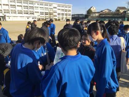 12月19日(火)スポーツごみ拾い1 公開日 2023/12/19 更新日 2023/12/19 学校の特色ある活動 3年生が、これまでの総合的な学習の時間で学んできたSDGsの取組を自分たちの地域で実践し、逢妻学区に対する地域愛を深めようと、スポーツごみ拾いの活動を行いました。 写真上は開会式の様子、写真中は出発前の作戦会議の様子、写真下は活動中の様子です。始まって間もない時間帯でしたが、この班はごみ袋が破れてしまうほど、多くのごみを集めていました。