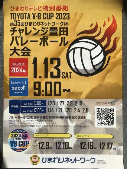 逢妻中学校バレーボール部も参加した「ひまわりネットワーク杯 チャレンジ豊田バレーボール大会」の様子が放映されます。ぜひご覧ください。