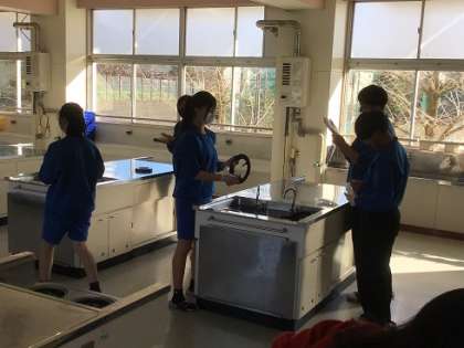 真ん中の写真は、調理室です。ガスコンロをきれいにしています。