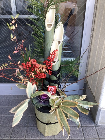 写真は、玄関に飾られた門松です。逢中生一人一人がよい新年を迎えることができるようにと、校内整備員の方が手作りした門松を飾ってくださいました。