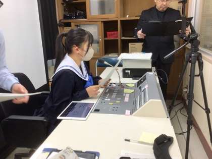 続けて、市内各中学校から代表生徒1名が参加した「イギリス海外派遣団」の報告です。逢妻中学校から参加した生徒による、イギリスと日本の学校や文化の違いや、海外で学んだことなど、プレゼンテーションソフトを用いながらの発表がありました(写真上)。