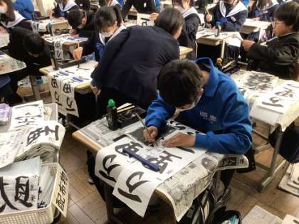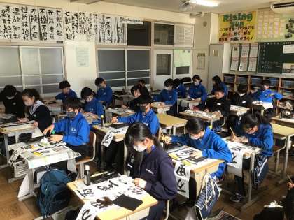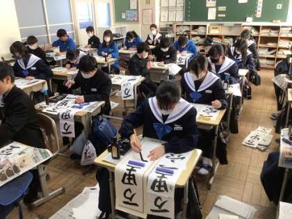 写真は1年生の様子です。中学校での初めての書き初め大会でしたが、どの生徒もがんばっていました。