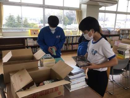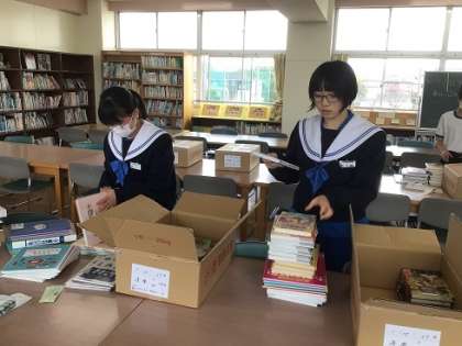 今日は清掃の時間を活用して、2年生の生徒が手伝ってくれていました。今後、今以上に図書室の活用が広がることを期待しています。