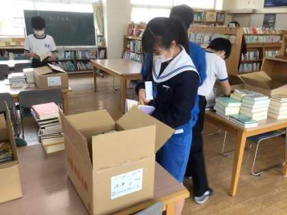 図書室の学習支援機能を高めるため、蔵書の大幅入れ替えを行っています。図書館司書の方が、こつこつと作業を進めてくださっています。