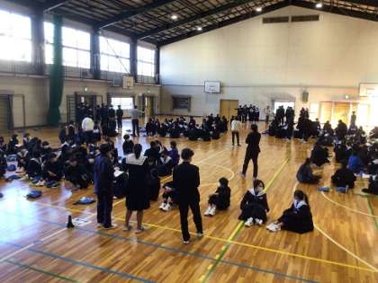 1月17日(水)いよいよ出発です1 公開日 2024/01/17 更新日 2024/01/17 学校行事 2年生は明日から3日間、自然教室に出かけます。今日は体育館に集まり、最終の打合せなどを行いました。 写真は、学年レクでの動き方をみんなで確認している様子です。生徒が進行役になり、自分たちで進めていこうとする姿勢が素晴らしいです。