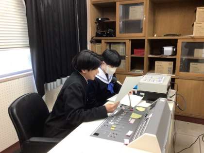逢中生同士の仲を深めようと、給食時の校内放送を活用して、各学級の紹介を行っています。インタビュー形式で、学級の特徴やエピソードを代表の生徒が伝えています。