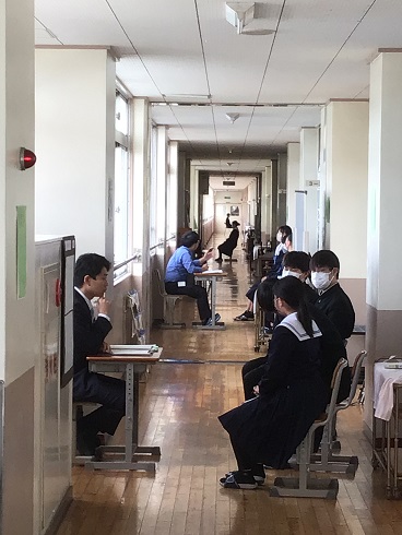 3年生です。様々な進路希望先における受検が始まっています。面接試験がある進路希望先に向けて、先生たちと練習に励んでいる姿をよく見かけます。
