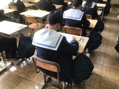 1年生の開始直前の様子です。どの学級でも集中して取り組んでいる逢中生の姿が見られました。